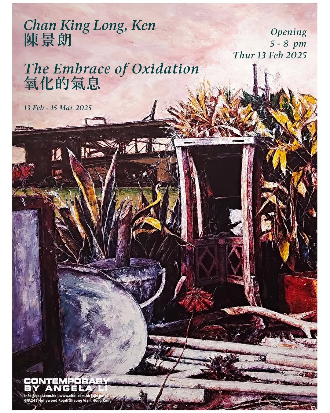 Chan King Long, Ken, The Embrace of Oxidation Invitation (poster); artwork image: The embrace of oxidation, oil on canvas, 152 x 180 cm, 2024 Chan King Long, Ken, The Embrace of Oxidation Invitation (poster); artwork image: The embrace of oxidation, oil on canvas, 152 x 180 cm, 2024 Chan King Long, Ken, The Embrace of Oxidation Invitation (poster); artwork image: The embrace of oxidation, oil on canvas, 152 x 180 cm, 2024